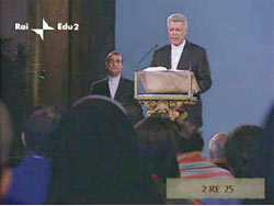 Ces jours-ci la Basilique Sainte Croix de Jérusalem à Rome est le siège d'un événement extraordinaire : la lecture intégrale de la Bible, Ancien et Nouveau Testament, pendant sept jours et six nuits sans interruption ni commentaire. Plus de 1.200 personnes de tout âge, catégorie sociale et appartenance religieuse se relaient dans la lecture du texte biblique retransmis en direct sur RAI1 et RAI Edu 2.